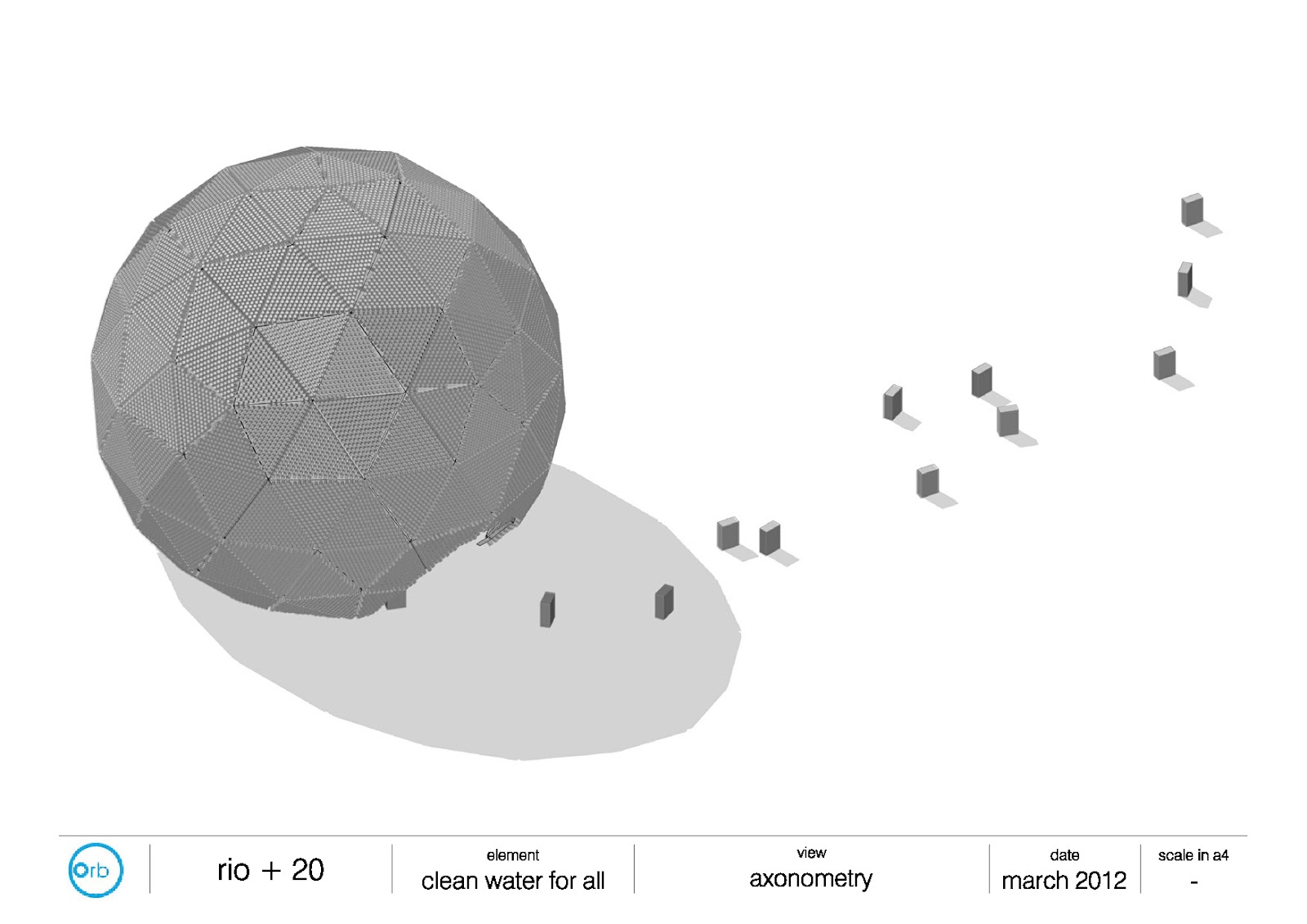 Water for all: a path of water drums leads into a sphere done with recycled bottles.
